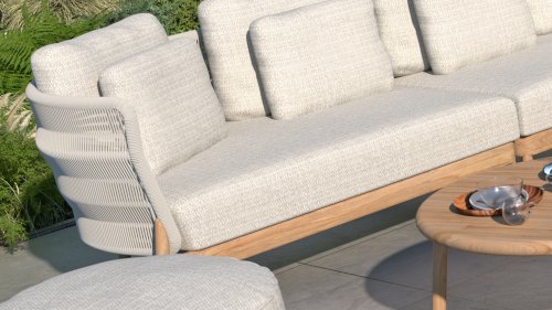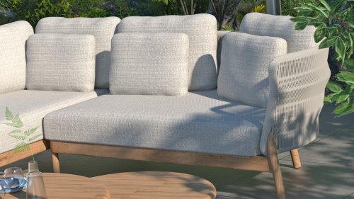 De Avalon loungeserie van 4 Seasons Outdoor heeft met zijn unieke uvormgeveing een zeer elegante uitstraling op je terras. Door het combineren van touw en teak materialen kan een warme en luxe uitstraling worden gecreëerd. Avalon sterke en duurzame Rope hebben een Frozen kleur, met lichte kleuren met grijstinten. Deze kleur past perfect bij de natuurlijke uitstraling van warm teak dat aan de basis is toegevoegd. Het all-weather kussen maakt het nog perfecter en zorgt voor het beste rijcomfort. Avalon is een modulaire loungeset, wat betekent dat u door te combineren met de beschikbare modules vele configuraties kunt creëren die aan uw specifieke behoeften voldoen. Om de goede conditie en kleur van teak te behouden, raden wij het gebruik van 4SO onderhoudsproducten aan.