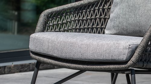De 4 Seasons Babilonia Loungeset heeft een moderne maar toch rustieke uitstraling met een natural touch die zo kenmerkend is voor het Design. De schoonheid zit hem in de details. Het frame van de 4 Seasons Babilonia Living loopt strak en vloeiend in elkaar over en is afgewerkt met het strak omvlochten Rope. Rug en zitting zijn gevlochten met dit sterke Rope en geeft een stevige maar comfortabele zit. Het frame vormt een speels en minimalistisch samenspel van vloeiende lijnen die samenkomen en weer uit elkaar gaan. De zijkanten en achterkant is met kunstig kruislings gevlochten Rope afgewerkt waardoor een speels geknoopt ruitenpatroon ontstaat... Kortom een lust voor het oog!