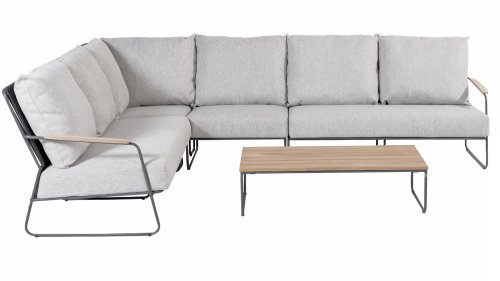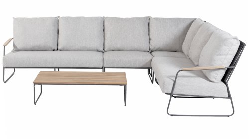 De Balade loungeserie van 4Seasons Outdoor is minimalistisch vormgegeven. De ranke rvs frames gepoedercoat in de kleur antraciet en de prachtige afwerking met weersbestendig Rope in de rugleuning gecombineerd met minimalistische comfortabele teakhouten armleggers, geven de Balade loungeset een industriële en eigentijdse uitstraling aan uw terras. Het frame is elegant vormgegeven en heeft op de armleuning warme teakaccenten. De Balade loungeserie bestaat uit een modulaire hoekopstelling en een losse opstelling.