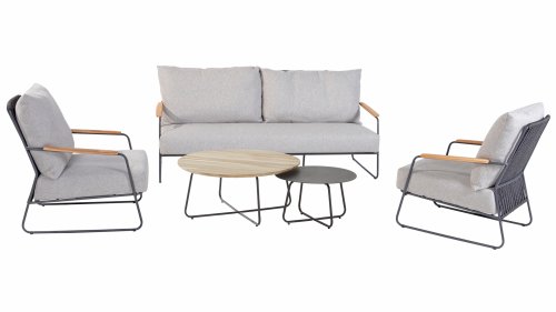 De Balade loungeserie van 4Seasons Outdoor is minimalistisch vormgegeven. De ranke rvs frames gepoedercoat in de kleur antraciet en de prachtige afwerking met weersbestendig Rope in de rugleuning gecombineerd met minimalistische comfortabele teakhouten armleggers, geven de Balade loungeset een industriële en eigentijdse uitstraling aan uw terras. Het frame is elegant vormgegeven en heeft op de armleuning warme teakaccenten. De Balade loungeserie bestaat uit een modulaire hoekopstelling en een losse opstelling.