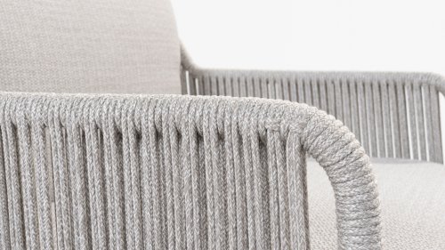 Prachtige vormen stromen door Bernini, een 4 Seasons Outdoor lounge stoel met een prachtig ontwerp. De rug en armleuningen zijn gemaakt van Rope. Rope is een prachtig zacht materiaal met een moderne uitstraling. Het touw is zeer sterk, UV-bestendig en heeft een zeer lage trekkracht. Het touw kan ook weinig of geen vocht en vuil opnemen.