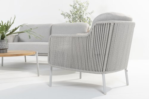 Prachtige vormen stromen door Bernini, een 4 Seasons Outdoor lounge stoel met een prachtig ontwerp. De rug en armleuningen zijn gemaakt van Rope. Rope is een prachtig zacht materiaal met een moderne uitstraling. Het touw is zeer sterk, UV-bestendig en heeft een zeer lage trekkracht. Het touw kan ook weinig of geen vocht en vuil opnemen. Deze Bernini Lounge serie van 4Seasons zal een absoluut icoon zijn in je tuin.