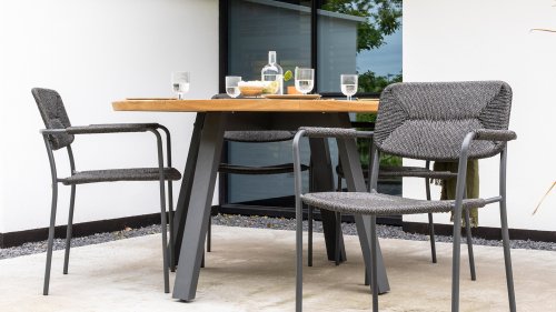 Dit zorgt naast een prachtig uiterlijk voor een verend comfortabele zit. In het ontwerp is rekening gehouden met een fraai gevormde zit- en rug gedeelte, de Bora tuinstoel zit dan ook heerlijk! De stoel wordt zowel in antraciet als in touw-kleur (naturel) geleverd. Vlechtwerk staat erom bekend dat het uiterst weerbestendig en makkelijk te onderhouden is. De 4Seasons Bora dining tuinstoel laat zich uitstekend combineren met de 4Seasons Taste Derby en Basso tafel serie. Mix & Match kan perfect met onze design serie Palma!