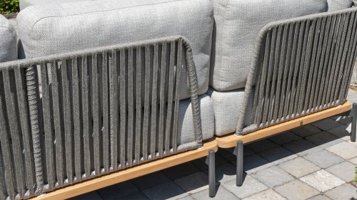 De Castello loungeserie van 4 Seasons Outdoor heeft met zijn unieke uitstraling een zeer elegante uitstraling op je terras. Door het combineren van touw en teak materialen kan een warme en luxe uitstraling worden gecreëerd. Castello 's sterke en duurzame touwen hebben een bevroren kleur, met lichte kleuren met grijstinten. Deze kleur past perfect bij de natuurlijke uitstraling van warm teak dat aan de basis is toegevoegd. Het all-weather kussen maakt het nog perfecter en zorgt voor het beste rijcomfort. Castello is een modulaire loungeset, wat betekent dat u door te combineren met de beschikbare modules vele configuraties kunt creëren die aan uw specifieke behoeften voldoen. Om de goede conditie en kleur van teak te behouden, raden wij het gebruik van 4SO onderhoudsproducten aan.