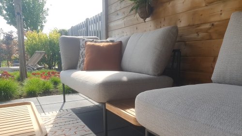 De 4Seasons Figaro loungeset heeft een moderne minimalistische uitstraling met een natural touch die zo kenmerkend is voor het Scandinavisch Design. De schoonheid zit hem in de details. Het frame van de 4SO Figaro Loungeset loopt strak en vloeiend in elkaar over en is afgewerkt minimalistische comfortabele teakhouten tussentafeltje. Het frame vormt een speels en minimalistisch samenspel van vloeiende lijnen die samenkomen en weer uit elkaar gaan... Een lust voor het oog!