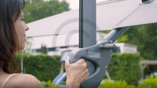 De 4Seasons hangarmparasol is inmiddels een echte klassieker. Deze zweefparasol heeft zijn kwaliteit inmiddels wel bewezen. De parasol is kantelbaar naar achteren, om de laagstaande zon op te vangen. Ook is de parasol draaibaar op de sokkel. Zie filmpje voor meer informatie. Standaard 5 jaar garantie.