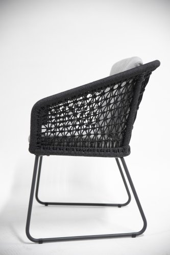 De 4 Seasons Mila tuinset heeft een moderne maar toch rustieke uitstraling met een natural touch die zo kenmerkend is voor het Design. De schoonheid zit hem in de details. Het frame van de 4 Seasons Mila diningstoel loopt strak en vloeiend in elkaar over en is afgewerkt met het strak omvlochten Rope. Rug en zitting zijn gevlochten met dit sterke Rope en geeft een stevige maar comfortabele zit. Het frame vormt een speels en minimalistisch samenspel van vloeiende lijnen die samenkomen en weer uit elkaar gaan. De zijkanten en achterkant is met kunstig kruislings gevlochten Rope afgewerkt waardoor een speels geknoopt ruitenpatroon ontstaat... Kortom een lust voor het oog!