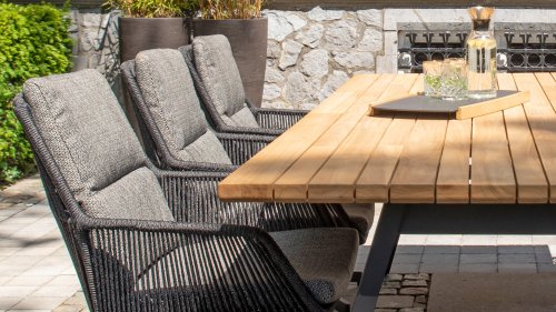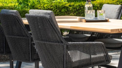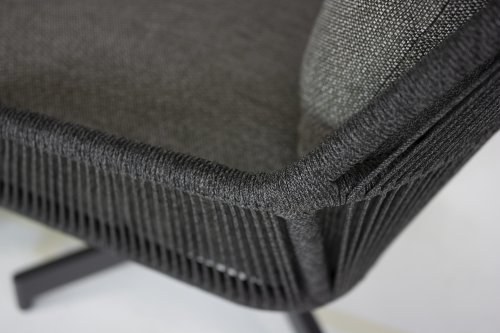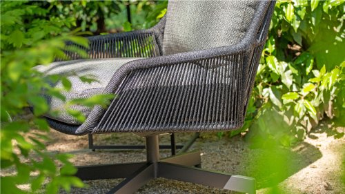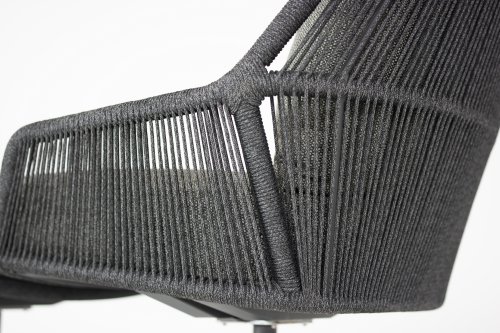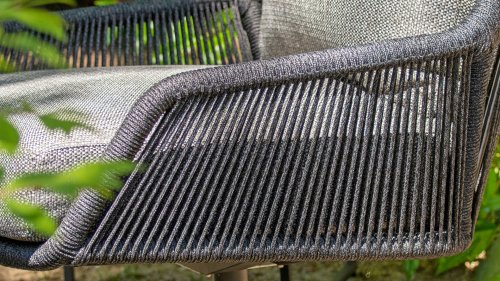 De Primavera heeft een prachtig elegant ontwerp. Het weerbestendige antraciete rope is strak gespannen door de meestervlechters van 4 Seasons Outdoor. De armleuningen, zitting en rugleuning hebben een verticaal patroon, waarbij het deel tussen armleuning en zitting open is gelaten. Een fraaie vondst die deze Primavera dining stoel zijn luchtige looks geeft. Het ranke onderstel past perfect in dit plaatje.