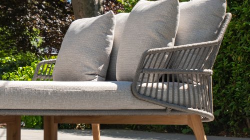 De Sempre loungeserie van 4 Seasons Outdoor heeft met zijn unieke uitstraling een zeer elegante uitstraling op je terras. Door het combineren van touw en teak materialen kan een warme en luxe uitstraling worden gecreëerd. Sempre 's sterke en duurzame touwen hebben een silver grey kleur, met lichte kleuren met grijstinten. Deze kleur past perfect bij de natuurlijke uitstraling van warm teak dat aan de basis is toegevoegd. Het all-weather kussen maakt het nog perfecter en zorgt voor het beste rijcomfort. Sempre is een modulaire loungeset, wat betekent dat u door te combineren met de beschikbare modules vele configuraties kunt creëren die aan uw specifieke behoeften voldoen. Om de goede conditie en kleur van teak te behouden, raden wij het gebruik van 4SO onderhoudsproducten aan.