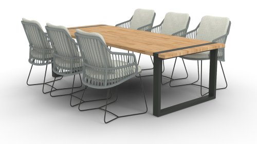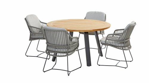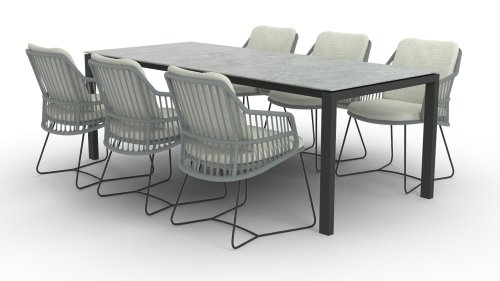 De 4Seasons Sempre tuinset heeft een moderne maar toch rustieke uitstraling met een natural touch die zo kenmerkend is voor het Design. De schoonheid zit hem in de details. Het frame van de 4Seasons Sempre diningstoel loopt strak en vloeiend in elkaar over en is afgewerkt met het strak omvlochten Rope. Rug en zitting zijn gevlochten met dit sterke Rope en geeft een stevige maar comfortabele zit. Het frame vormt een speels en minimalistisch samenspel van vloeiende lijnen die samenkomen en weer uit elkaar gaan. De zijkanten en achterkant is met kunstig kruislings gevlochten Rope afgewerkt waardoor een speels geknoopt ruitenpatroon ontstaat... Kortom een lust voor het oog!
