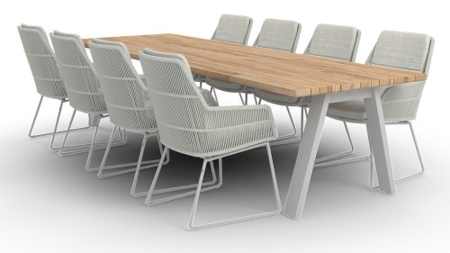 Het merk geeft ook een ruime garantieperiode! Op de Valencia eetkamerstoelen zit 5 jaar garantie. Het frame van de 4 Seasons outdoor Valencia eetkamerstoel is gemaakt van roestvrij staal. Het RVS is gepoedercoat waardoor het niet roest. De rustruimte is gemaakt van touw. Touw is een prachtig zacht materiaal met een moderne uitstraling. Het touw is zeer sterk, UV-bestendig en heeft een zeer lage trekkracht. Het touw kan ook weinig of geen vocht en vuil opnemen.