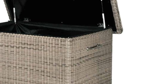 De 4Seasons Wales opbergbox is een XL formaat, ideaal voor het opbergen van uw lounge kussens. Aan het deksel zitten 2 gasveren bevestigd die het openen en sluiten gemakkelijk maken. De kussenbox is verrijdbaar. Met het RVS handvat rijdt u de box zo van zijn plaats. De 4SO Wales opbergbox is weerbestendig en kunt u het gehele jaar door buiten laten, natuurlijk inclusief kussens. De vlecht draad in Pure kleur maakt de box perfect te combineren bij iedere lounge set in de Pure kleur.