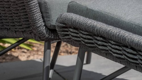 Het onderstel is in fragiel gevormd, maar oersterk, gepoedercoat R.V.S. in een neutrale antraciete kleur. Het prachtige Antraciet kleurige Rope-draad geeft een modern maar toch "warme" uitstraling. Het met Antraciet kleurig Rope omvlochten frame is van onderhoudsvrij aluminium. De 4 Seasons Wing combineert perfect met de 4 Seasons Axel en Dali salontafel series. En om het geheel nog compleet te maken is er in de 4SO Wing serie ook een bijpassende 4 Seasons Wing dining stoel verkrijgbaar.