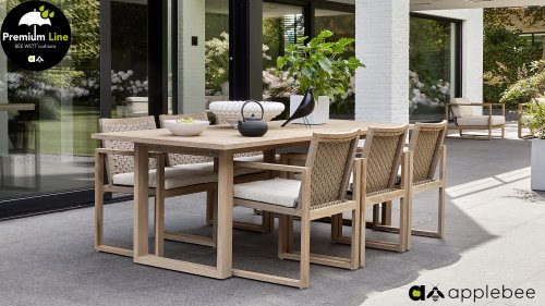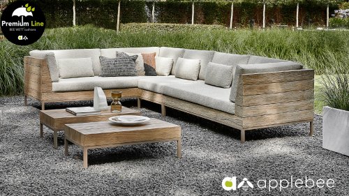 APPLEBEE is een tuinmeubelmerk met een uniek design van Nederlandse bodem. Sako Wijma, designer bij Apple Bee, weet ieders wensen te vertalen naar verrassende ontwerpen. Hij bedenkt en ontwikkelt alle meubelen zelf, waardoor Apple Bee gegarandeerd uniek is in zijn klasse. Door originele ontwerpen is Apple Bee een toonaangevend merk in de tuinmeubelenbranche geworden. De vormgeving is gericht op het doel, de functie. Het lijnenspel en de gebruikte materialen maken het meubel uniek. Daarom blijft een Apple Bee tuinmeubel ook na jaren een lust voor het oog, want pure ontwerpkwaliteit is tijdloos. Alle zit- en rugkussens beschikken over een uitstekend zitcomfort. Bovendien hebben deze de unieke Bee Wett-technologie. Dit zorgt ervoor dat uw BEE WETT kussen spectaculair veel sneller droogt dan andere kussens.