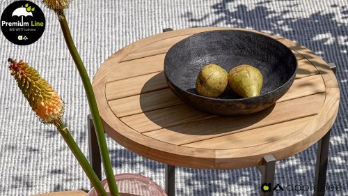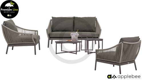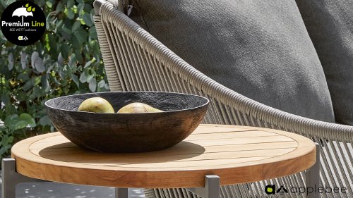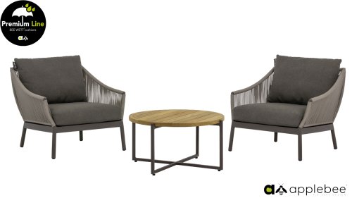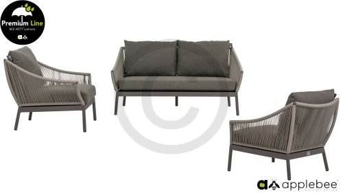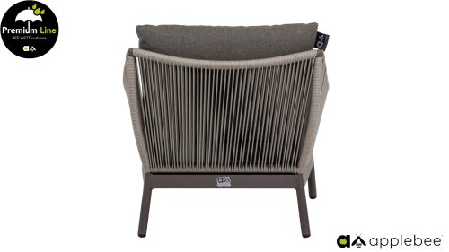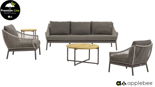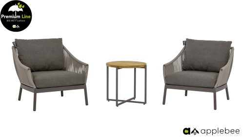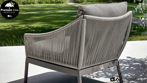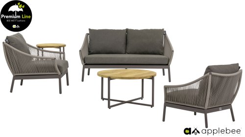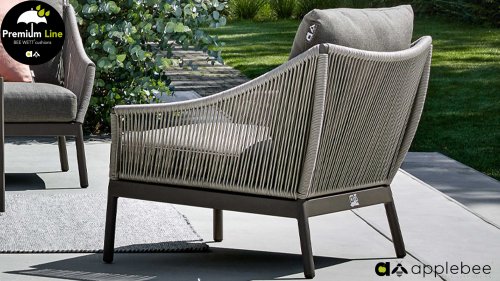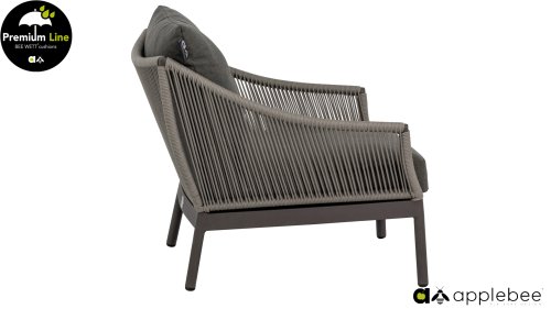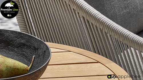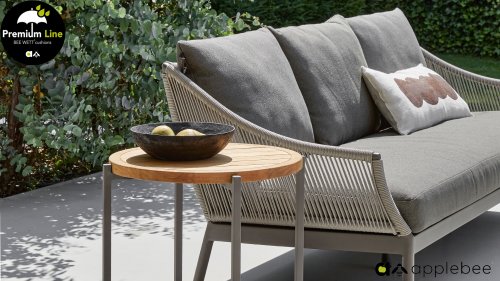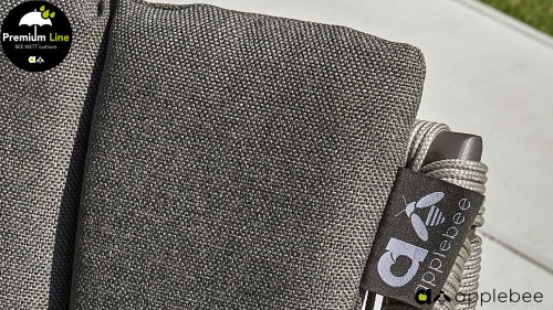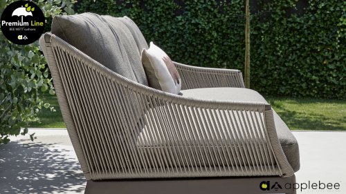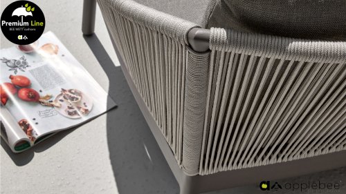 Door het vriendelijke formaat is Applebee Bijou Taupe ook geschikt voor een balkon of kleiner terras. Met Bijou is er weer een typisch origineel Apple Bee designmeubel in de collectie bijgekomen! Bij de premium line zijn de kussens voorzien van Bee Wett® technologie, wat ervoor zorgt dat de kussens weer snel droog zijn na een fikse regenbui. U kunt de kussens dus gewoon buiten laten liggen. De drainage aan de onderzijde van het kussen zorgt er namelijk voor dat het water de kussens eenvoudig kan verlaten. In het royale formaat kunt u verdwijnen in luxe en comfort. De Apple bee Bijou loungeset Taupe is daarmee uitermate geschikt om écht te loungen. Het Ropedraad vergt een bijzondere vlechttechniek, die alleen de beste vlechters beheersen. Deze ambachtslieden vlechten iedere draad één voor één handmatig in. Je haalt met AppleBee Bijou Loungeset Taupe dus een echt staaltje ambachtskunst in huis.
