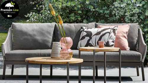 Het materiaal is perfect bestand tegen regen, omdat het rope waterbestendige vezels bevat die zacht aanvoelen: functioneel en comfortabel! Uiteraard is deze lounge set ook weer uitgerust met onze Bee Wett® kussens. Deze speciale weerbestendige kussens zijn ontwikkeld volgens onze speciale technologie zodat ze snel droog zijn na een regenbui.
