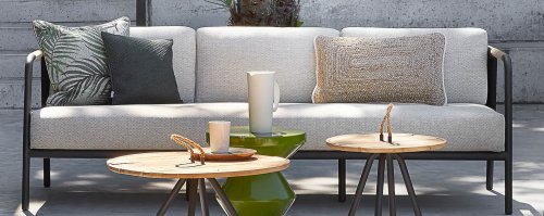 Het basismateriaal van de Elle set is matzwart gepoedercoat aluminium. De BEE WETT® kussens hebben een grove weefstructuur, maar dit wel met een soft touch voor het optimale comfort. Samen met de mooie rondingen in de rug en het gebruik van naturel teakhout in het tafelblad en de stoelleuningen, krijgt de Applebee Elle Lounge toch dat aangename vleugje natuurlijke warmte mee. De rugleuning is voorzien van een solide gevlochten zwartkleurige belt, die als het ware het rug kussen op de hoeken omarmt.