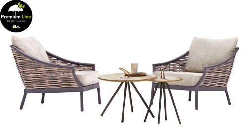 De meisjesnaam Milou betekent zacht en vriendelijk. Dit gaat zeker op voor de nieuwe parel in de Apple Bee collectie. Het vlechtdraad van de AppleBee Milou Black lounge heeft de uitstraling van wilgenteen. Natuurgetrouw om te zien, maar in de bekende stevige Biculair® buitenkwaliteit die je van Apple Bee gewend bent. Dit vlechtwerk wordt omlijst door een zwart gepoedercoat frame met gebogen lijnen, waaraan Loungeset Milou haar chique, moderne look ontleent. Wordt het frame traditioneel verstopt onder het vlechtwerk, voor de Milou heeft ontwerper Sako Wijma het vlechtwerk als het ware ingekaderd in het frame dat juist zichtbaar verwerkt is. Dit maakt het meubel extra spannend. Ook leverbaar binnen deze serie: AppleBee Milou White lounge en Milou White Dining + Milou Black Dining en ook een bar set Black van Milou!