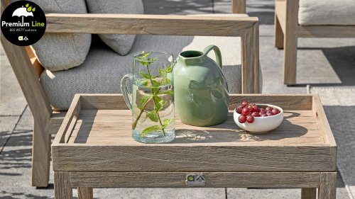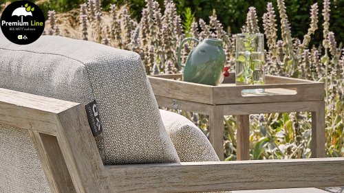 Onze vertrouwde Olive Lounge hebben we dit jaar in een nieuw jasje gestopt. De White Wash afwerking van het teak, maakt plaats voor de rustigere Coastal finish. De strakke, hoekige lijnen van deze lounge set lopen schuin af. Schuif de voetenbank aan bij de lounge stoel en geniet van het comfort dat deze teakhout set je te bieden heeft. Op onze zachte en weerbestendige Bee Wett® kussens, weet je in ieder geval zeker dat je lekker zit! De Olive Traytable biedt het gemak om spullen makkelijk te verplaatsen door het afneembare dienblad.