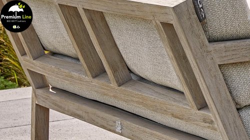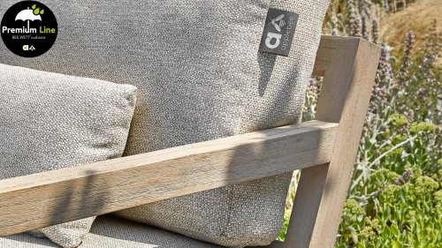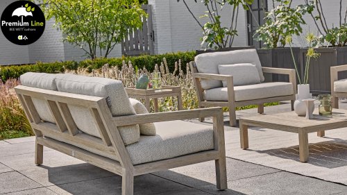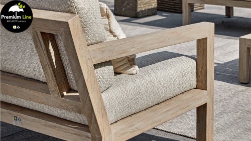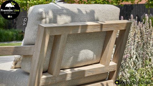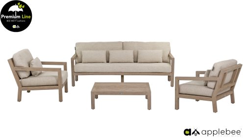 De Applebee Olive Loungeset: Robuuste teakhouten balken, samengesmolten tot een stoer en tijdloos loungemeubel. De Applebee Olive Loungeset blijft zéker niet onopgemerkt in uw tuin of op uw terras, in welke opstelling dan ook! Dus bent u echt op zoek naar compleet iets anders? Bekijk dan zeker de Olive met de originele Coastal tint op het stevige teakhout. De bijpassende Natural Oak kleur Bee Wett kussens geven de Olive in combinatie met het gebleekte teakhout, een zeer fraaie uitstraling.