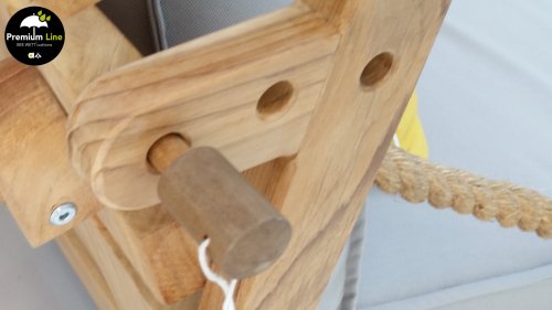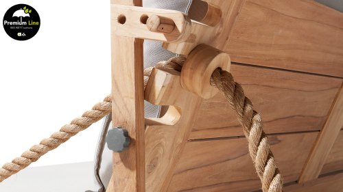 Naast zijn fraaie looks, is de Robinson met al zijn functionaliteiten geschikt voor iedere situatie. Geniet aan het strand, bij het zwembad of ontspan lekker met een boek in je eigen tuin. Robinson zal zichzelf aanpassen aan jouw smaak. Robinson is in elke gewenste positie te plaatsen door het verstelbare touw wat aan de rugleuning is vastgemaakt. Door de eindstop vast te zetten in één van de drie standen bepaalt u zelf of u rechtop of lekker achterover wilt zitten. Door middel van een uitschuifbaar contragewicht blijft de Robinson stevig in zijn positie staan. Deze extra houten bevestiging zorgt er dus voor dat het meubel niet kan omkiepen. Het houten contragewicht is netjes weggewerkt in het onderstel van de Robinson, waardoor dit geen afbreuk doet aan zijn stoere uiterlijk.