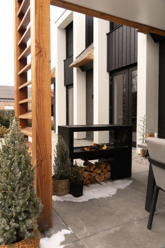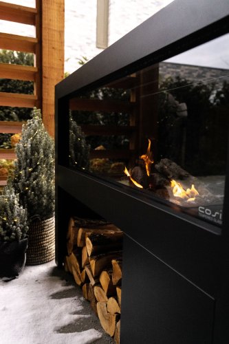 Een nieuwe verrassende toevoeging aan de Cosi collectie is de Cosivista serie. De Cosivista is een unieke vrijstaande gashaard, waar je doorheen kan kijken. Deze haard is namelijk voorzien van twee grote glazen wanden. Met deze brede haard van 120 cm of 160 cm kan jij de ruimte in jouw tuin of onder de overkapping in verschillende ruimtes indelen. Zet hem bijvoorbeeld tussen jouw loungeset en buitenkeuken, zo maak je de tuin vanuit verschillende hoeken sfeervol en gezellig. Wil je de Cosivista voor een wand plaatsen? Ook dit is mogelijk door de handige extra achterwand die meegeleverd wordt. Dit aluminium zwarte paneel hang je eenvoudig vanaf de bovenkant in de Cosivista. Met één kleine handeling heb je een totaal andere look voor deze prachtige gashaard. In de Cosivista 120 plaats je een gasfles met een max. hoogte van 40cm. Grote broer Cosivista 160 heeft zelfs ruimte voor gasflessen tot 60 cm hoog. Zo kan je nog langer genieten van de heerlijke warmte van deze kachel.