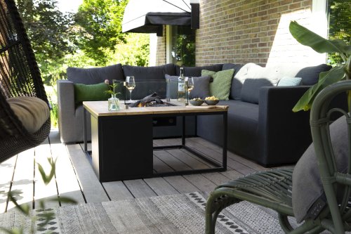 De Cosiloft 100 lounge table is een prachtige loungetafel welke je helemaal naar jouw smaak kan samenstellen. Deze nieuwe collectie van Cosi is een evolutie in de vuurtafels. De Cosiloft beschikt over een mooi, opengewerkt aluminium frame met een tafelblad naar eigen keuze. Er zijn drie verschillende tafelbladen verkrijgbaar: grijs, zwart en teak. Het frame is in twee kleuren beschikbaar: wit voor een moderne look of zwart voor een industriële stijl. Ondanks zijn mooie loungetafel hoogte past er in de Cosiloft 100 zelfs een 5 kg gasfles. Deze zit goed verwerkt in het pure design van de Cosiloft tafel. Bij iedere Cosiloft wordt een afdekplaat voor de brander meegeleverd. Heb je de haard niet aanstaan, dan kan je op deze manier toch gebruik maken van het totale tafeloppervlak. Geniet van het samenzijn met familie en vrienden!