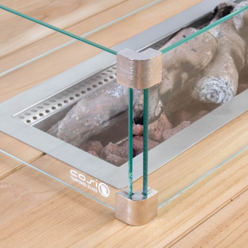 De Cosiloft 120 lounge table kan gemakkelijk worden gecombineerd met een grote range lounge sets. De Cosiloft 120 lounge table beschikt over een straight burner die genoeg ruimte geeft om al je vrienden en familie uit te nodigen voor een drankje. De Cosiloft is 80 cm breed en 120 cm lang. Deze vuurtafel heeft net als de Cosiloft 100 een mooi, opengewerkt aluminium frame dat gecombineerd kan worden met een van de drie tafelbladen: teak, zwart en grijs. Het frame is in twee kleuren beschikbaar: wit voor een moderne look of zwart voor een industriële stijl. Ondanks zijn mooie loungetafel hoogte past er in de Cosiloft 120 zelfs een 5 kg gasfles. Deze zit goed verwerkt in het pure design van de Cosiloft tafel. Bij iedere Cosiloft wordt een afdekplaat voor de brander meegeleverd. Heb je de haard niet aanstaan, kan je op deze manier toch gebruik maken van het totale tafeloppervlak.