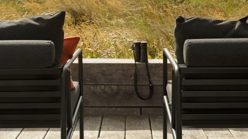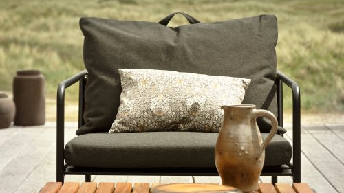 Het onderhoudsvrije gepoedercoat frame en de constructie van de grote zachte rugkussens is precies dat - de eenvoud van de structuur, waarbij lage lijnen ervoor zorgen dat het ontwerp er altijd trots uitziet, zowel met als zonder kussens - zomer of winter. De handvatten van de kussens, is een statement om de functie van het product te maken, waardoor ze worden gemaakt gemakkelijk vast te pakken en indien nodig op te bergen.