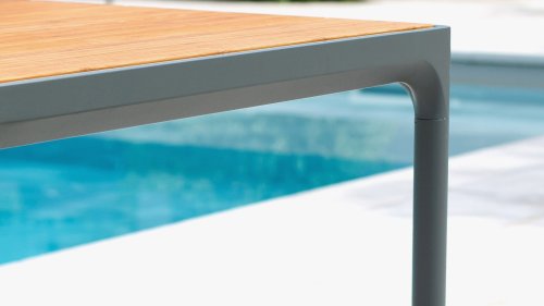 De Four tafel van Houe is een robuust model dat goed past binnen een industrieel interieur of een stoer interieur. De tafel is ontworpen om weer en wind te kunnen weerstaan. De Four tafel heeft een sterk aluminium frame verkrijgbaar in gepoedercoat grijs of zwart. Het bamboe tafelblad heeft een structuur die erg geschikt is voor het buitengebruik. De tafel komt in de afmetingen met een lengte maat van 90, 160, 210 en 270cm en hebben allemaal een breedte maat van 90cm en een hoogte van 74cm(bartafel 111cm hoog).  Bamboo is een duurzamer alternatief voor teak. Wel adviseren we om de bamboe 2-3 keer per jaar in te smeren met olie, de tafel zal dan langer zijn warme kleuren behouden.