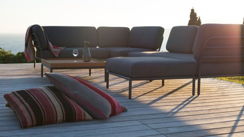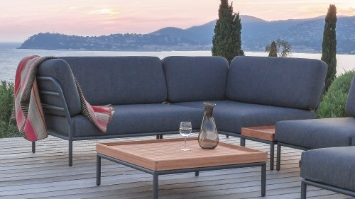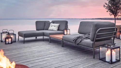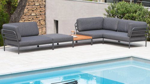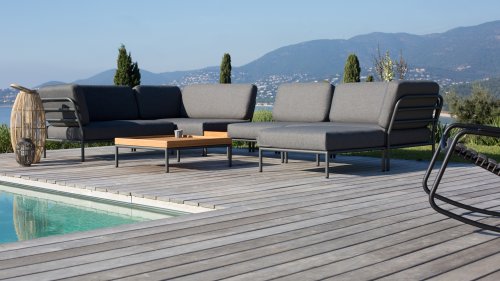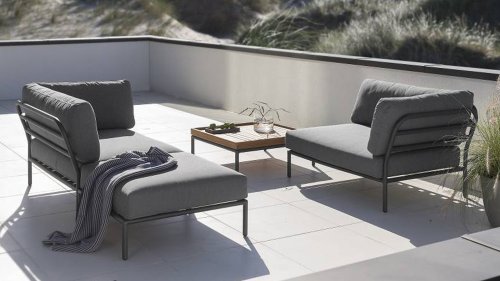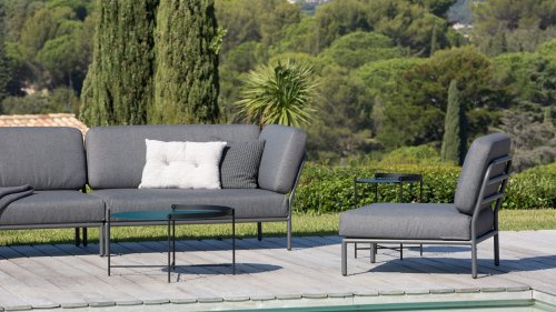De verschillende elementen van deze collectie kunnen op verschillende manieren met elkaar worden gecombineerd, wat resulteert in een hoogwaardige loungehoek op uw terras. De bankmodule is gemaakt van gepoedercoat aluminium en heeft kussens van waterafstotend, donkergrijs materiaal. Deze ruime, zachte loungeset schreeuwt om zon, boeken en een drankje. En het allergrootste pluspunt? Ook met zijn tweeën kun je comfortabel liggen, omdat er kussens aan de armleuningen bevestigd zijn. Kies dus je lievelingskant, en het genieten kan beginnen.