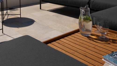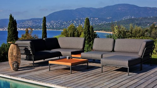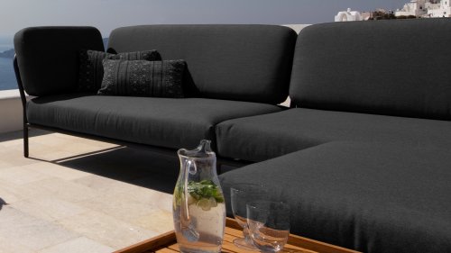 De verschillende elementen van deze collectie kunnen op verschillende manieren met elkaar worden gecombineerd, wat resulteert in een hoogwaardige loungehoek op uw terras. De bankmodule is gemaakt van gepoedercoat aluminium en heeft kussens van waterafstotend, donkergrijs materiaal. Deze ruime, zachte loungeset schreeuwt om zon, boeken en een drankje. En het allergrootste pluspunt? Ook met zijn tweeën kun je comfortabel liggen, omdat er kussens aan de armleuningen bevestigd zijn. Kies dus je lievelingskant, en het genieten kan beginnen.