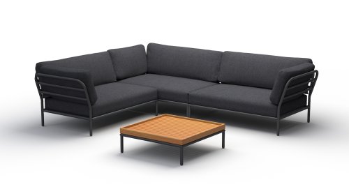 Houe Level Lounge is een modulair (zelf samen te stellen) lounge combinatie voor buiten. De Level lounge bestaat uit verschillende elementen, waardoor er vele combinaties mogelijk zijn. Het frame van de lounge is van aluminium en heeft een uitstekende poedercoating. De kussens in de lounge zijn voorzien van een speciale outdoor stof met een basis van Quickdry foam. Hierdoor zijn de kussens in een mum van tijd weer droog en ontstaat er geen schimmel. De stoffen zijn eenvoudig te reinigen met een mild reinigingsmiddel. De kussens zijn uitritsbaar en wasbaar op 30 graden.