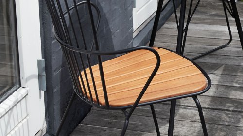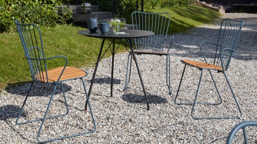 PAON is licht Scandinavisch in zijn ontwerp maar met een vleugje Frans Victoriaanse romantiek. De PAON-lijn bestaat uit een eetkamerstoel, loungestoel, schommelstoel, een tweezitsbank en een barstoel. Gemaakt van gepoedercoat staal met bamboe lamellen. De PAON stoel heeft een zitcomfort dat je niet zou verwachten van een metalen stoel! PAON Eetkamerstoelen zijn stapelbaar. Kussens zijn verkrijgbaar in carbon grijs.