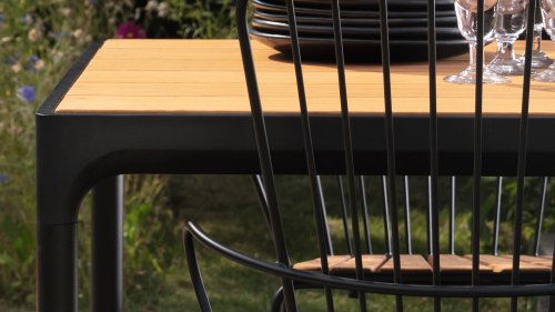 De Four tafel van Houe is een robuust model dat goed past binnen een industrieel interieur of een stoer interieur. De tafel is ontworpen om weer en wind te kunnen weerstaan. De Four tafel heeft een sterk aluminium frame verkrijgbaar in gepoedercoat grijs of zwart. Het bamboe tafelblad heeft een structuur die erg geschikt is voor het buitengebruik. De tafel komt in de afmetingen met een lengte maat van 90, 160, 210 en 270cm en hebben allemaal een breedte maat van 90cm en een hoogte van 74cm(bartafel 111cm hoog). Bamboo is een duurzamer alternatief voor teak. Wel adviseren we om de bamboe 2-3 keer per jaar in te smeren met olie, de tafel zal dan langer zijn warme kleuren behouden.