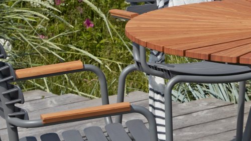 HOUE ReClips Dining collectie: Lichtgewicht met een minimalistisch ontwerp. Gemaakt uit volledig gerecycled plastic! De tuinstoel is ontworpen door Henrik Pedersen, een van oorsprong Deense designer die we al kennen van de iconische Click! Verkrijgbaar in 4 kleuren, met bamboo of aluminium armlegger.