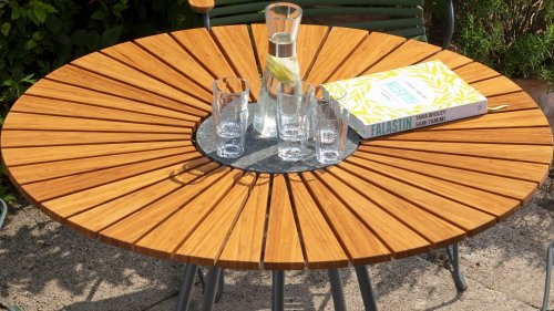 De Houe circle is een ronde tuintafel met een prachtig gemeleerd bamboe blad. De circle komt in 2 maten, namelijk 150cm en 110cm. Het leuke aan deze ronde tafel is dat het veel plek biedt. In het midden van de circle tafel zit een composiet steen. Dit is handig als u uw hete pannen e.d een plek moet geven. Het scandinavische design in combinatie met de duurzame bamboe zorgen ervoor dat deze tafel in iedere tuin tot zijn recht komt. Bamboe is een snel groeiende plant en daarom veel duurzamer dan teak. We adviseren de tafel 2-3 keer per jaar te oliën. Wanneer de tafel goed onderhouden wordt gaat hij erg lang mee en blijft hij zijn prachtige kleuren behouden.