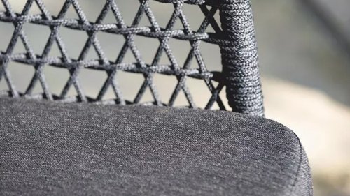 Het Niehoff Kubu frame is omvlochten is met synthetische wicker in de vorm van touw (Rope). De kussens zijn uitgevoerd in een prachtige Southend Antraciet stof. Door de veerkracht van het Rope materiaal en de heerlijke zit-en rugkussens ontstaat een subliem zit-comfort! Deze stof is zeer weerbestendig en duurzaam.