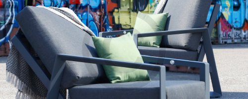 De sterke stof is bestand tegen een regenbui,uitritsbaar en wasbaar. Handig, maar let wel: de kussens zijn waterafstotend. Laat je ze lang in de regen liggen, dan kunnen ze alsnog nat worden aan de binnenkant.