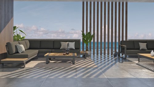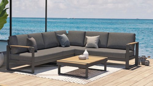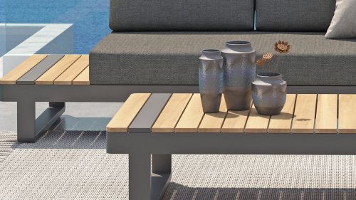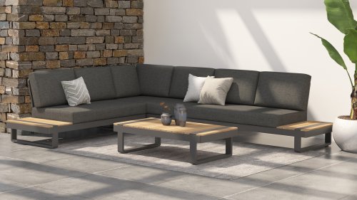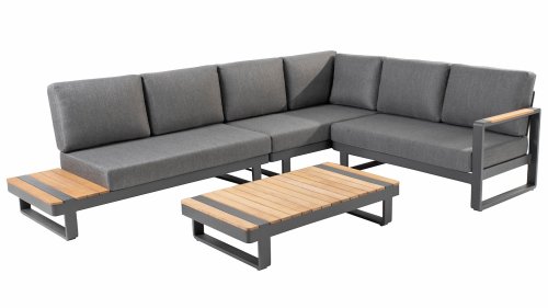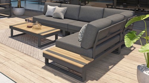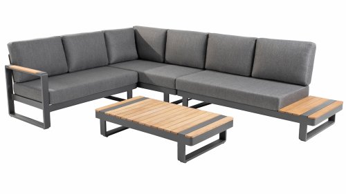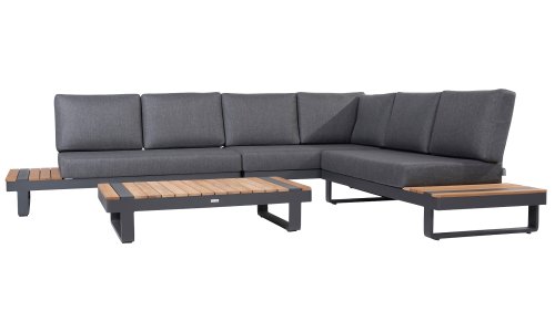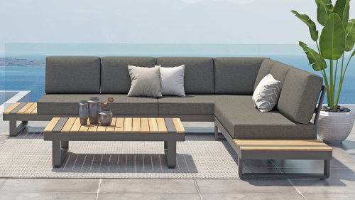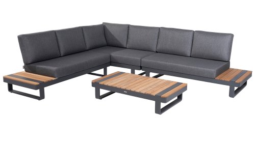 De Taste by 4 Seasons Amari loungeset is een moderne platform loungeset met een strak design. De Semi- all weather kussens die op de loungeset liggen krijgt u er standaard bij en hebben een hoog comfort niveau. Het set is te koop met zowel een hoektafel of een kussenhoek, het voordeel van de sluitende kussenhoek is dat het set een extra zitplek heeft. En dat u vanuit de hoek heerlijk kunt "loungen" met de benen op de bank! De kleuren combinatie met het teakhout en aluminium zorgt voor een fantastische uitstraling!