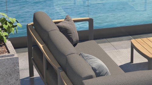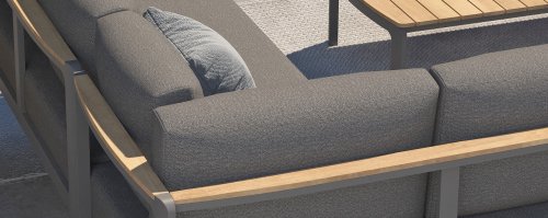 De kleuren combinatie met het teakhout en aluminium zorgt voor een fantastische uitstraling! Metname door de vloeiende vormengeving van de teakhouten armleuning die geheel doorloopt in de rugleuning si een ware eyecather en geven de Cortina Loungeset de aandacht die het verdient! Het is kwaliteit en dat zie je bijvoorbeeld ook terug in het aluminium frame, deze is minimaal 2 mm dik en voorzien van een extra sterke Matt Carbon poeder coating. Het frame is hierbij beter beschermd en sterker dan vele andere tuinmeubelen. Vandaar dat ook op dit set standaard 5 jaar garantie van toepassing is. Het moderne design, de hoogwaardige materialen en het uitzonderlijk goed zitcomfort zijn dé kenmerken van de Taste 4 Seasons Outdoor Cortina Loungeset!