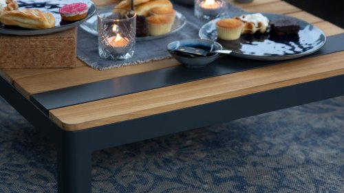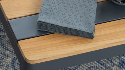 Middag, neem even de tijd voor jezelf en ontspan. De combinatie van materialen geeft Meridien zijn unieke look. Stijlvol antraciet aluminium en teak is een klassieke combinatie die in deze comfortabele platform loungeset perfect tot zijn recht komen.