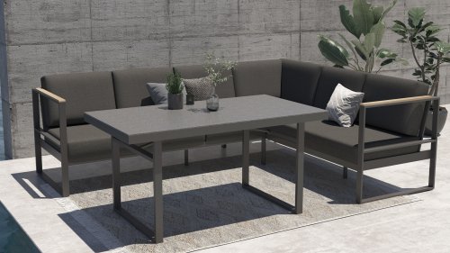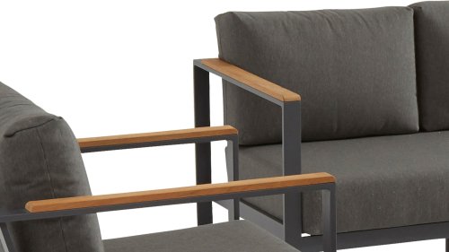 De kleuren combinatie met het teakhout en aluminium zorgt voor een fantastische uitstraling! Het is kwaliteit en dat zie je bijvoorbeeld ook terug in het aluminium frame, deze is minimaal 2 mm dik en voorzien van een extra sterke Matt Carbon poeder coating. Het frame is hierbij beter beschermd en sterker dan vele andere tuinmeubelen. Vandaar dat ook op dit set standaard 5 jaar garantie van toepassing is. Het moderne design, de hoogwaardige materialen en het uitzonderlijk goed zitcomfort zijn dé kenmerken van de Taste 4 Seasons Outdoor Montigo Loungeset!