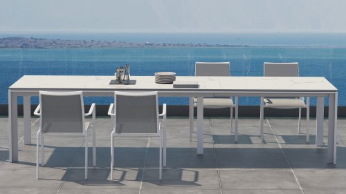 Met een uitschuifbare tafel zit u altijd goed. Met uw gezin aan tafel of met een grote groep vrienden. Het is met de Optimum uitschuiftafel allemaal mogelijk. Het keramiek is onderhoudsvrij en het gepoedercoate aluminium frame zal niet roesten. De middenpoot zal automatisch meebewegen, en geeft een extra versteviging aan de tafel.
