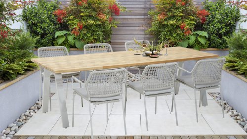 Op zoek naar een mooie tuinset? Na een drukke dag op het werk heerlijk buiten eten, of een lange avond natafelen met familie of vrienden. Met een Diningset kan het allemaal. De materialen van onze tuinsets zijn ontwikkeld om de elementen te weerstaan. Kiest u voor warm teakhout, strak aluminium, sierlijk Rope van 4 Seasons Outdoor, tijdloos vlechtwerk of een combinatie van materialen zoals bij Applebee? Nieuw en Planet Proof zijn de modellen van recycled kunststof van het Deense merk HOUE! Combineer naar hartelust met de tafel van uw keuze. Als u een andere combinatie wenst dan afgebeeld, kunt u de zelf samenstellen knop gebruiken. Neem gerust contact met ons op over de mogelijkheden!. Wij zullen ons best doen om u zo goed mogelijk van advies te voorzien.