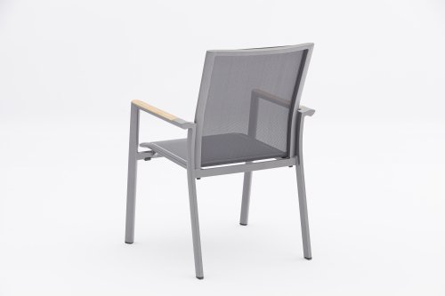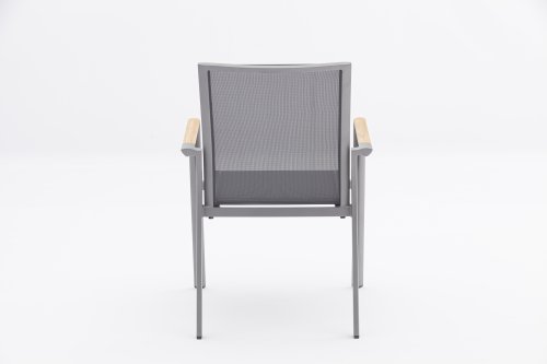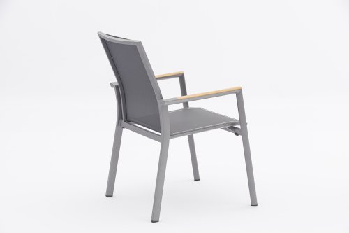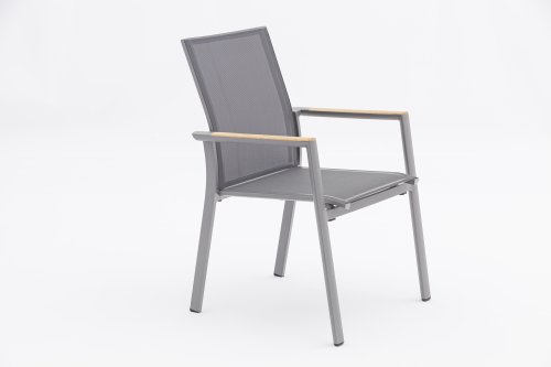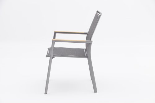 De Zebra Greenline Fly serie. Het frame van gepoedercoat aluminium Graphite, Elegance grey of RVS. Deze serie is bedekt met een Dark grey gekleurde Batyline® stof. De Batyline® Textilene dat is gebruikt, is een bewezen synthetische stof die is ademend en scheurvast is voor meerdere jaren. De serie Greenline van Zebra combineert onder andere hedendaagse, ecologie en duurzaamheid met elkaar. In de corporate-concept Greenline is de kwestie van duurzaamheid en de selectie van milieuvriendelijke materialen, die worden verwerkt tot comfortabele, fraai vormgegeven, tijdloze meubels.
