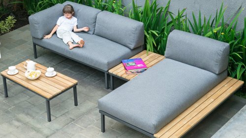 De Zebra Hudson Lounge belooft niet alleen een hoog niveau van comfort, maar is uiterst elegant en straalt klasse uit. Het fijne aluminium frame volgt de hoogwaardige zit- en rugkussens perfect op en vervolledigt het uiterlijk van de Zebra Hudson. De armleuning van gpoedercoat aluminium loopt in één vloeiende lijn achterlangs de rugleuning door, en vormt zo een oogstrelend lijnenspel met de teakhouten accenten. De Zebra Hudson mag gezien worden van alle kanten! Het gepoedercoat aluminium frame is onderhoudsvrij. De heerlijk dikke kussens zijn niet alleen van Tuva all weather kwaliteit, maar bieden door het gebruik van verschillende vullingen in zit- en rugkussens een extreem hoog zitcomfort. Vlei u neder in deze geweldige lounge-kussens en ervaar hoe echt loungen bedoeld is.
