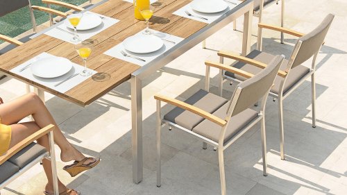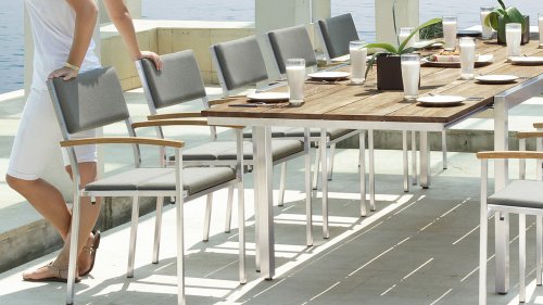 De Zebra Greenline Quadux tuinstoel stapelbaar serie. Het frame van geborsteld roestvrij staal is bedekt met een smoke gekleurde Sunbrella® stof. De SunbrellaTextilene dat is gebruikt, is een bewezen synthetische stof die is ademend en scheurvast is voor meerdere jaren. De serie Greenline van Zebra combineert onder andere hedendaagse, ecologie en duurzaamheid met elkaar. In de corporate-concept Greenline is de kwestie van duurzaamheid en de selectie van milieuvriendelijke materialen, die worden verwerkt tot comfortabele, fraai vormgegeven, tijdloze meubels.